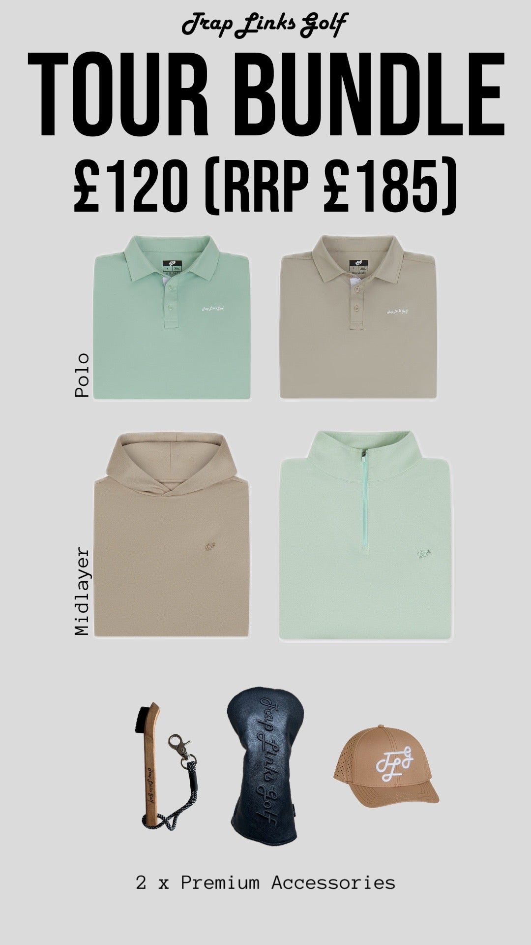 Choose Three Premium Polos, Two Midlayers & One Cap